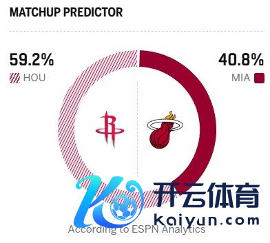 ESPN本日晒出本场奏凯展望,火箭为59.2%。主队热火只好40.8%。