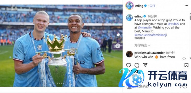哈兰德写谈:“一位顶级球员体育录像/图片,亦然顶级的好昆季!很自重曾在多特蒙德和曼城与你并肩接触。祝你一切顺利,Manu!”