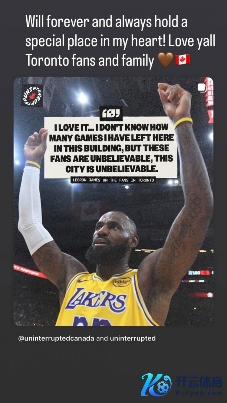 詹姆斯写说念:“将历久在我的心中占据迥殊的位置!多伦多的球迷和家庭们体育录像/图片,我爱你们!🤎🇨🇦”
