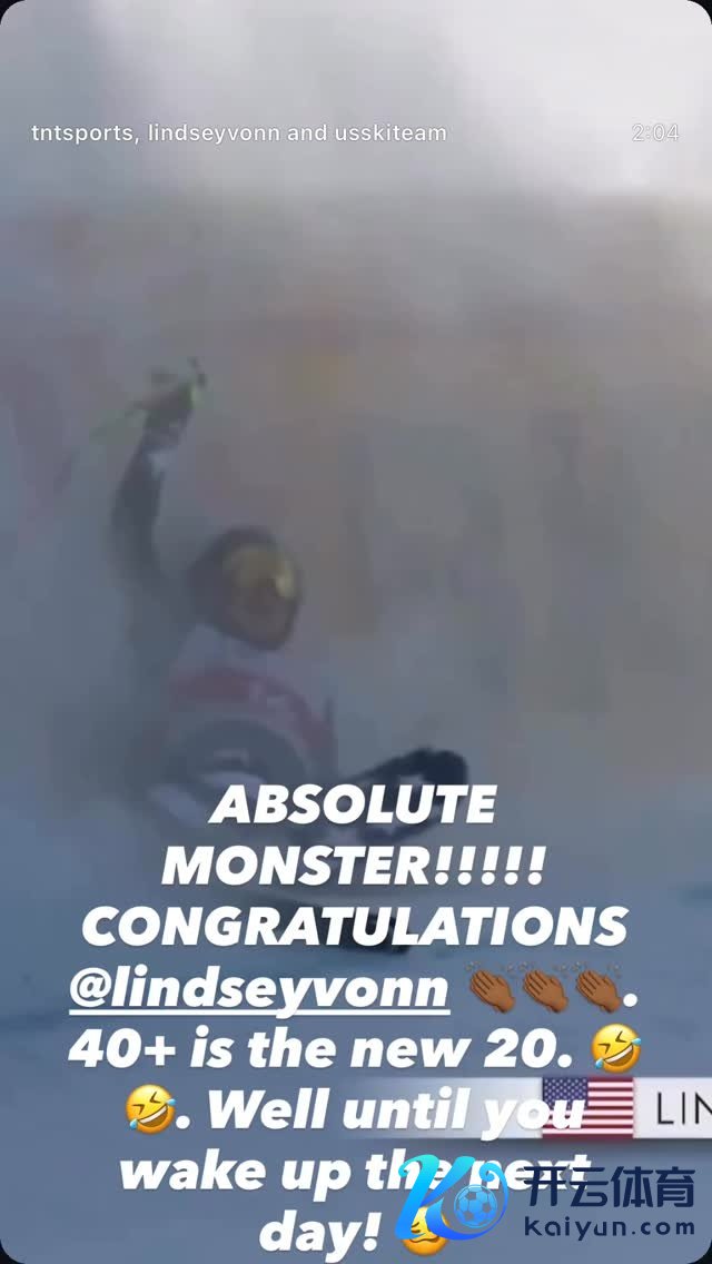 “的确一头猛兽!祝愿@林赛·沃恩 👏🏾👏🏾👏🏾 40多岁等于新的20岁。🤣🤣 额体育录像/图片,直到你在第二天醒来!🥴”詹姆斯写说念。