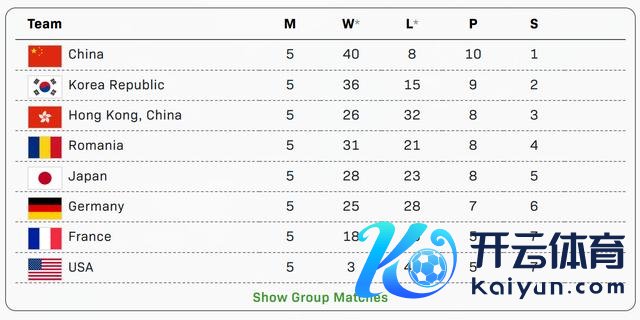 国乒在此次比赛里那但是面面俱到,一齐高唱大进,七连胜在各队里领跑呢。